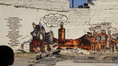 Wenn man auf demokratischen Wege über Zeitungen und das Fernsehen nicht frei von staatlicher Unterdrückung seine Meinung äußern darf, suchen sich die Menschen neue Methoden und Wege, um durch Ästhetik den Aufstand, der in jedem unterdrückten Geist schwillt, wieder zu erwecken. Weitermachen. Niemals stillstehen. Das sind die Botschaften der Graffiti-Aktivisten. Ihr berühmtestes Bild schaffte es dabei zu überregionaler Bekanntheit und wurde im Rahmen vieler Nachrichtensendungen weltweit rezipiert. An einem zentralen Knotenverkehrspunkt Nairobis, der Muindi Mbingu Street nahe des Marktes, entstand in einer nächtlichen Aktion ein symbolträchtiges Wandbild, das von Boniface Mbwangi, einem prominenten Fotojournalisten, und Swift9 initiiert wurde.
